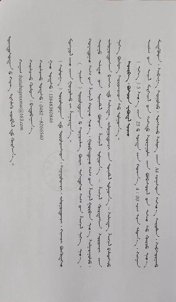 蒙古语诗歌朗诵选拔赛参选手报名回执单》和打印好两首作品各一份,参赛时交到民教股斯琴高娃老师。