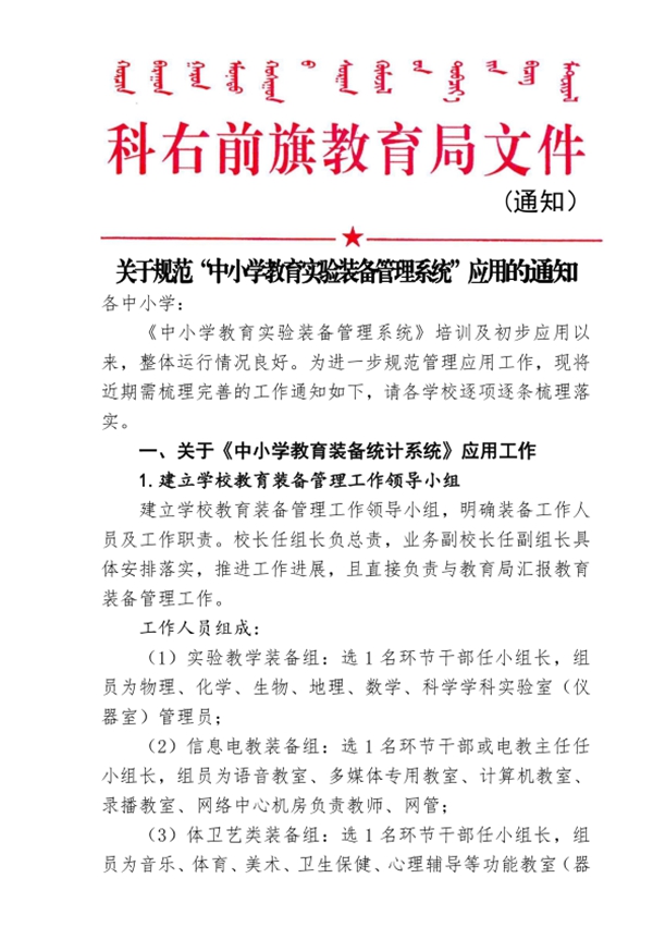关于规范“中小学教育实验装备管理系统 ”应用的通知