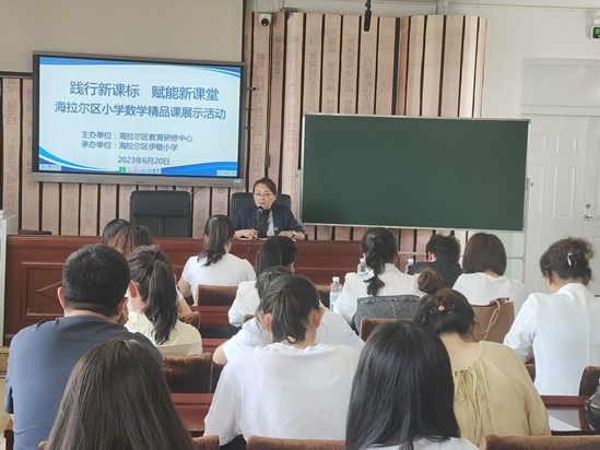 为了贯彻落实“双减”工作精神,落实立德树人根本任务,以落实“五育并举”为基础,提高课堂教学质量为中心,推进课堂教学改革,围绕提升学生核心素养,积极探索培养学生关键能力的有效途径,2023年6月20日,海区教育研修中心小学数学教研员高老师组织开展了以“践行新课标 赋能新课堂”小学数学精品课展示活动,海区各学校小学数学分管领导和年轻骨干教师参加本次活动。