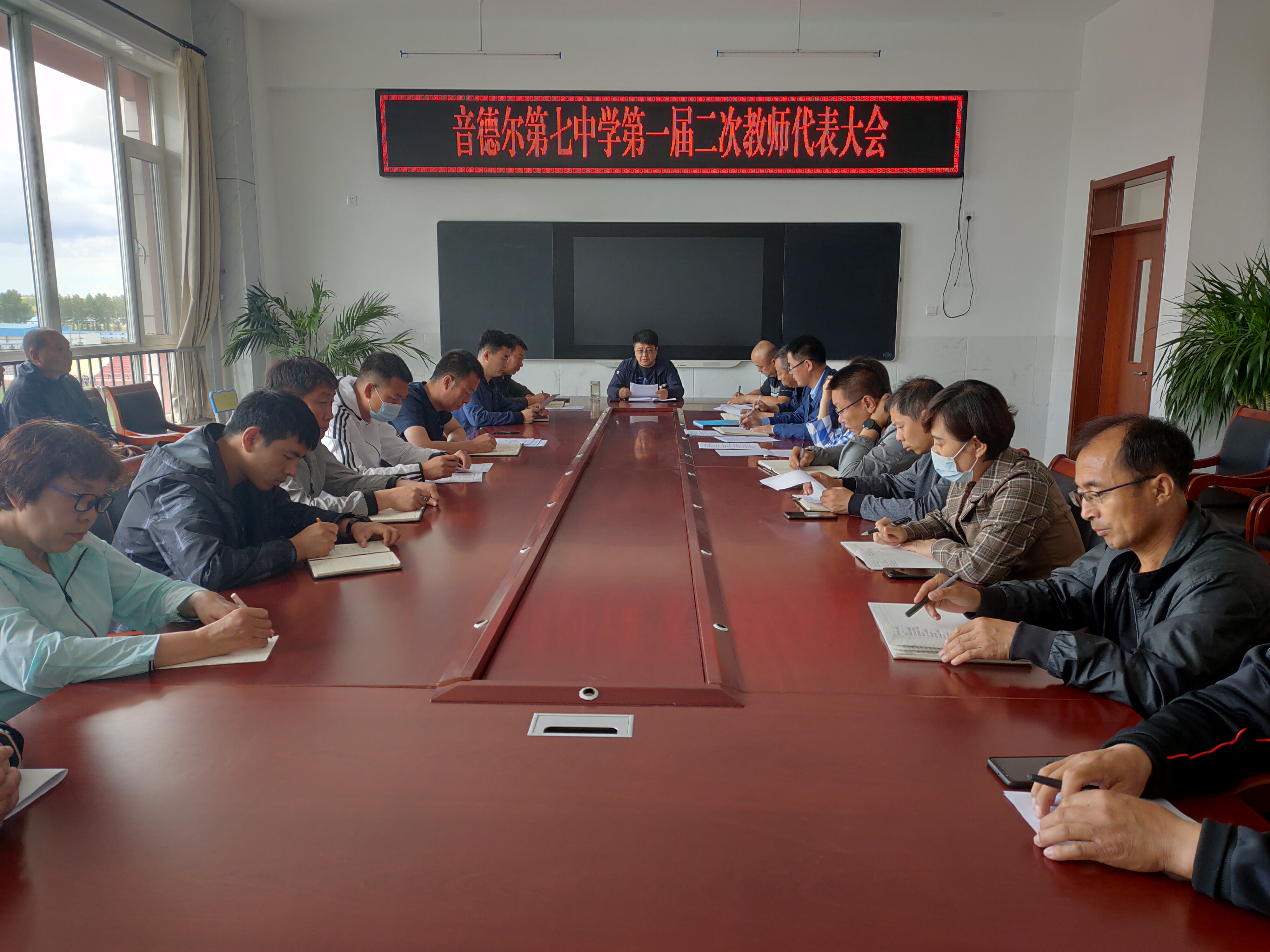 2021年6月1日上午,音德尔第七中学召开第一届二次教职工代表大会,与会代表认真听取了赵铁成副校长通报的《音七中出勤考核细则》修改条款的解释说明,尹宇光副校长通报的《音七中班主任绩效考核方案》(试行),乔万华副校长通报的《音七中任课教师量化考核细则》(试行)。会上张立伟校长做了教代会代表提案解答报告,参会代表积极讨论并审议了各部门拟定的考核方案及细则,各项议程圆满结束。