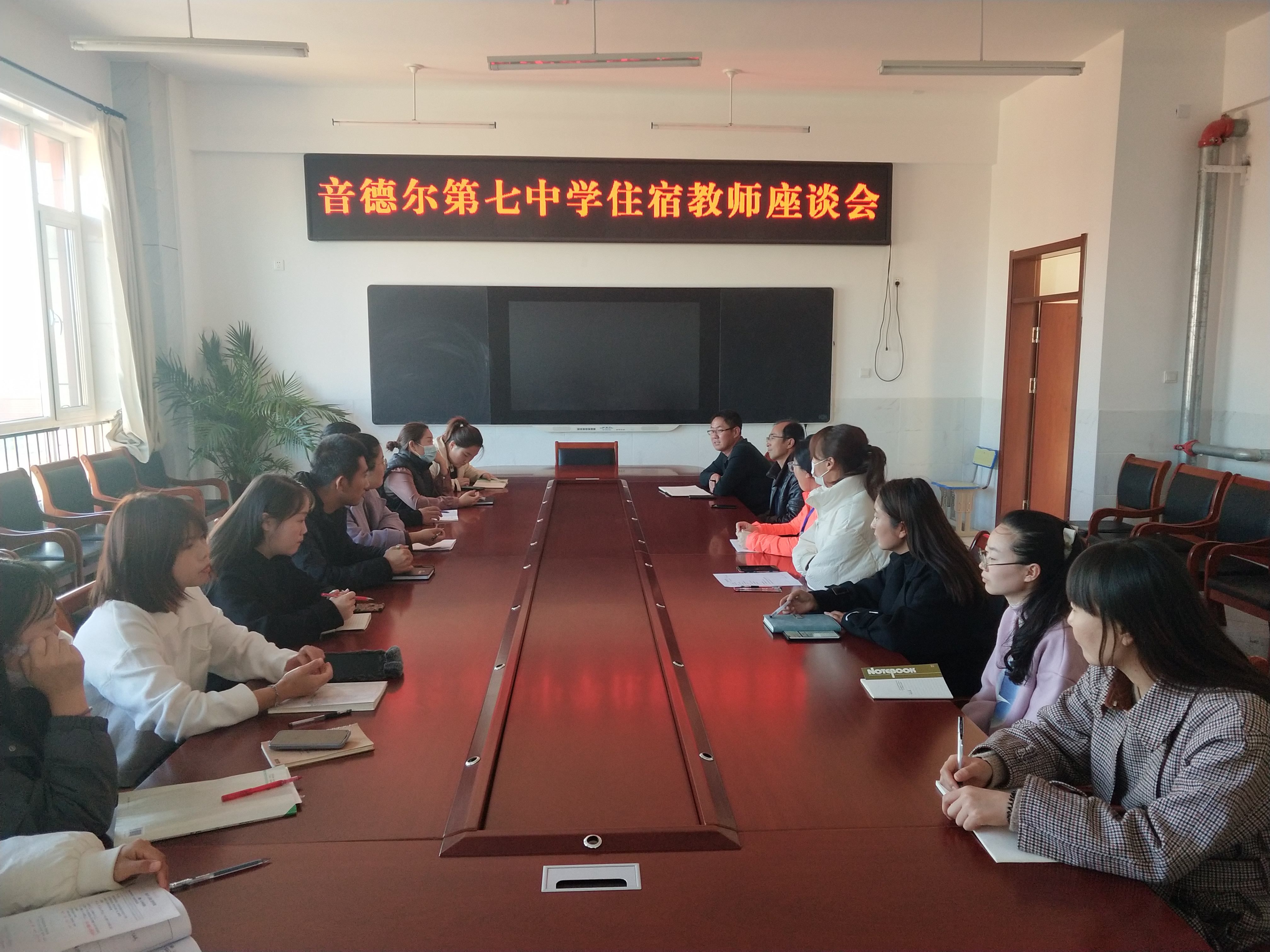音德尔第七中学青年教师居多,住宿教师达五十多人,为解决住宿教师工作生活方面的后顾之忧,音德尔第七中学继9月7日之后于10月31日,又一次召集全体住宿教师召开了座谈会,会议由工会主席姜宝军主持,工会副主席张承波参加会议并讲话,常务副校长尹宇光应邀参加会议。