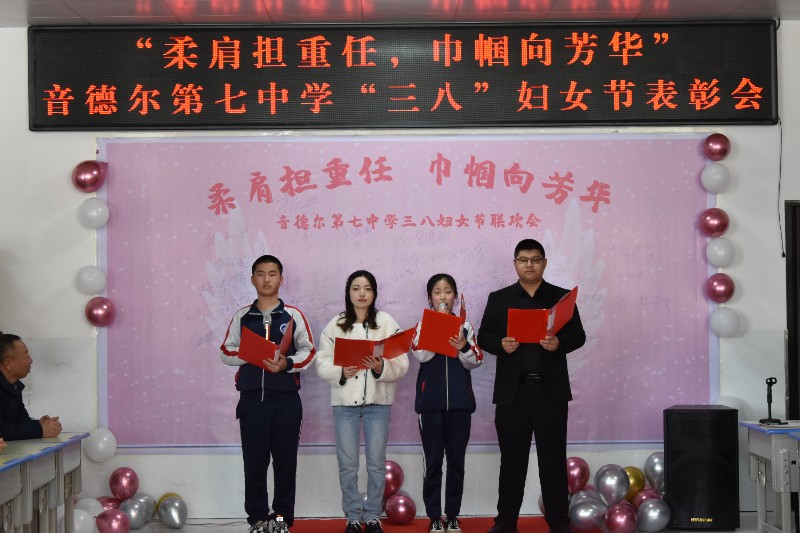 “三八”国际劳动妇女节是全世界劳动妇女团结奋斗、争取解放的光辉日子,是女性的节日。为了让辛勤忙碌的女教师们过一个令人难忘的“三八”妇女节,3月8日上午10点,音德尔第七中学工会、团委、办公室联合组织了“柔肩担重任,巾帼向芳华”“三八”妇女节表彰会。