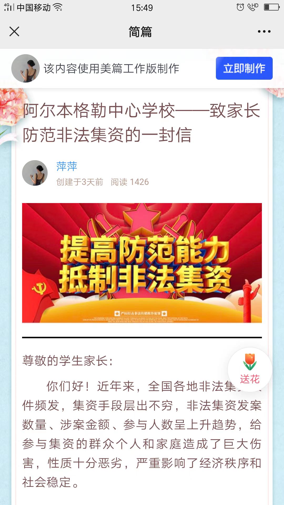 阿尔本格勒中心学校致家长一封信,提醒家长远离高利诱惑,拒绝非法集资。