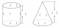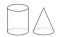 下图是等底等高的圆柱和圆锥,从不同方向看,会看到不同的形状。从上面看到的形状是( ),从前面看到的形状是( )